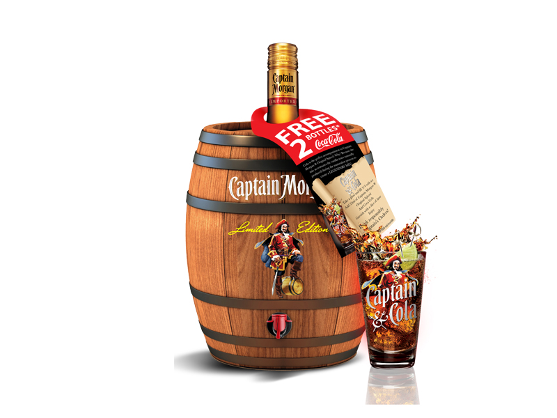 The Captain Morgan Cocktail Barrel is a package of limited edition of Captain Morgan ® Original Spiced. The Captain Morgan Cocktail Barrel could be used for parties, so people could make their favorite cocktail (Captain & Cola) in the barrel and the guest can easily refill their glass.