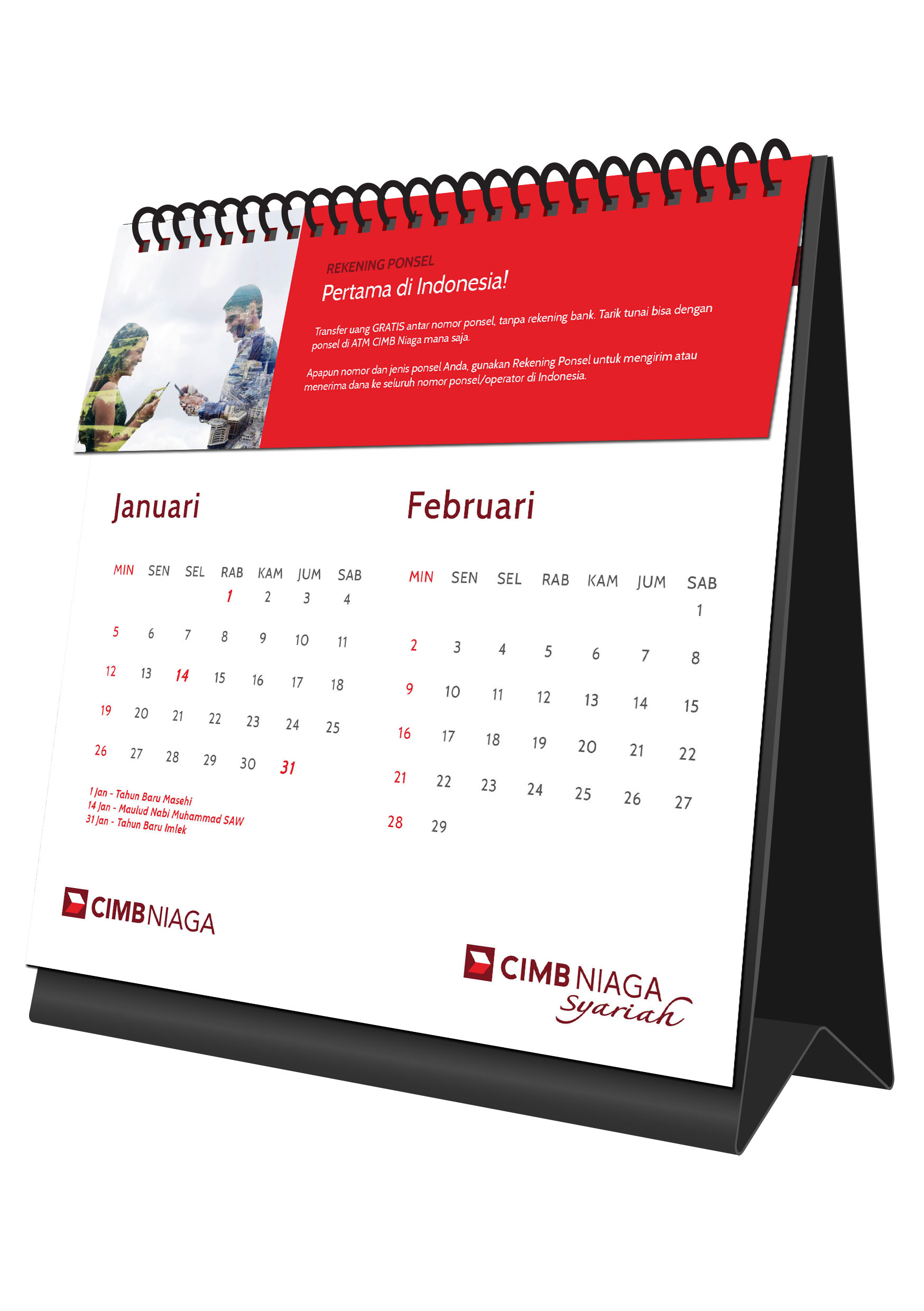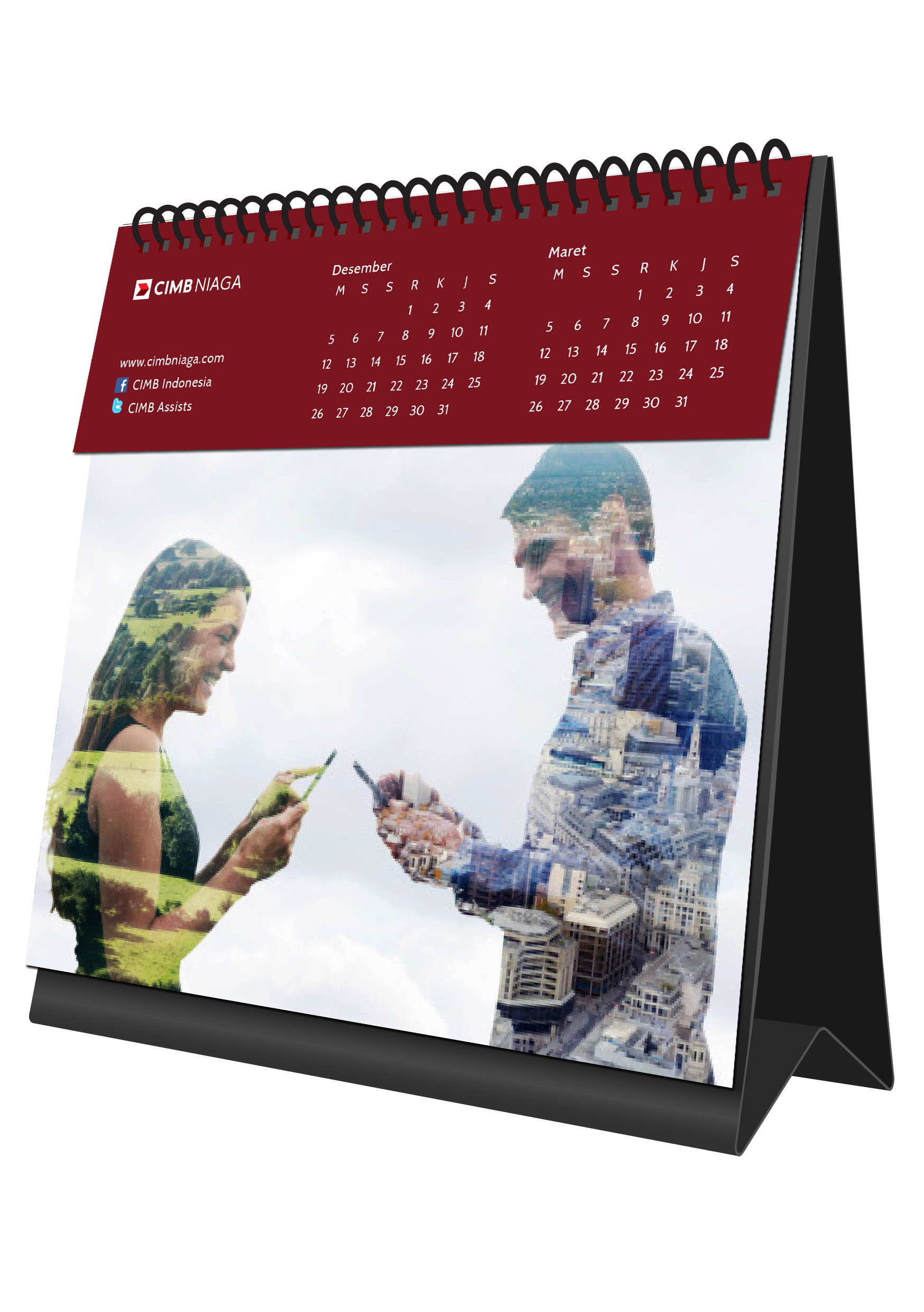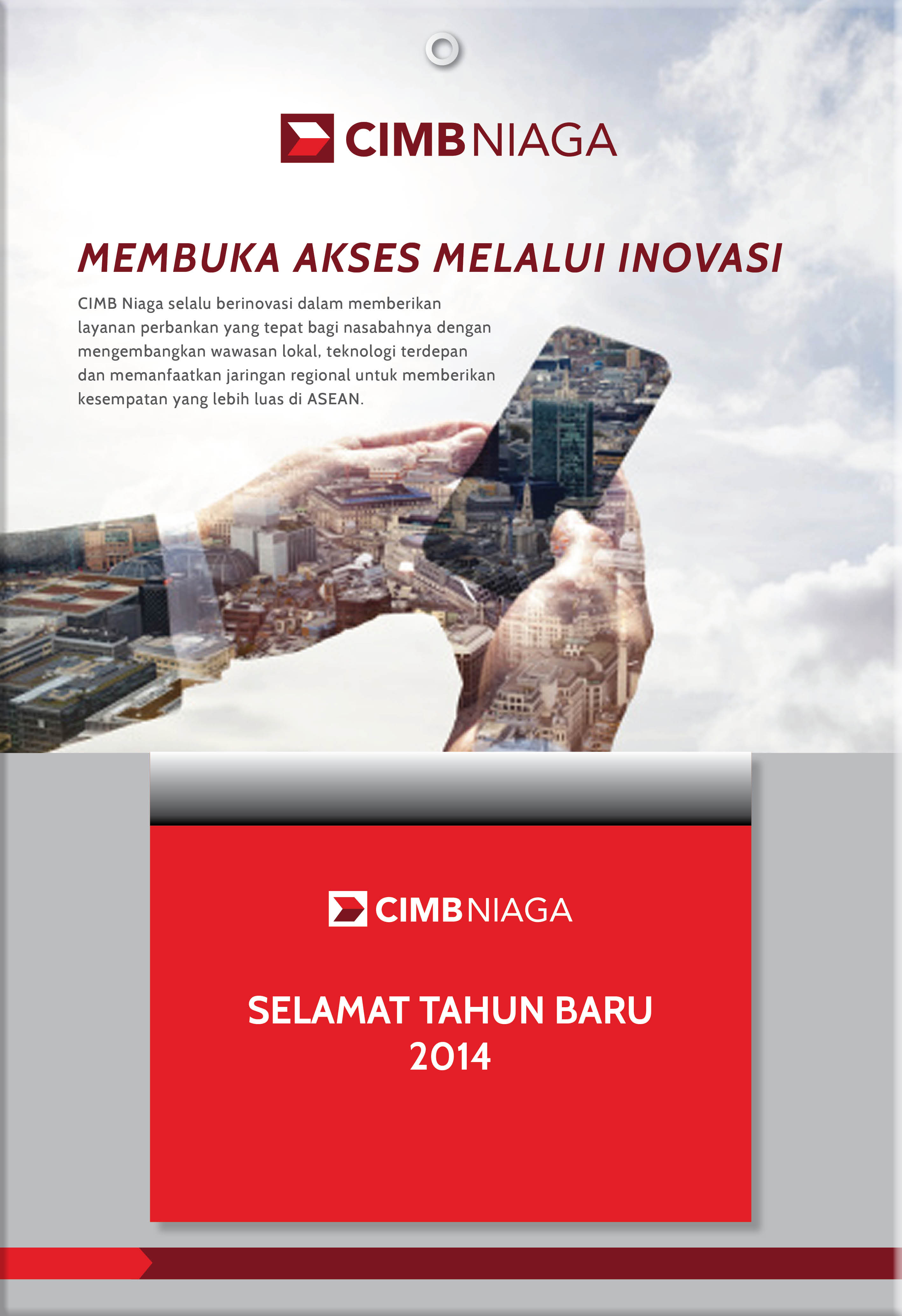 In this 2014 new year kit, we try to propose digital exploitation and tech innovation from CIMB Niaga. With the breakthrough product of CIMB Niaga, Rekening Ponsel, and the vision toward branchless banking, we want to give the message to public about the wide and innovative access given by CIMB Niaga.