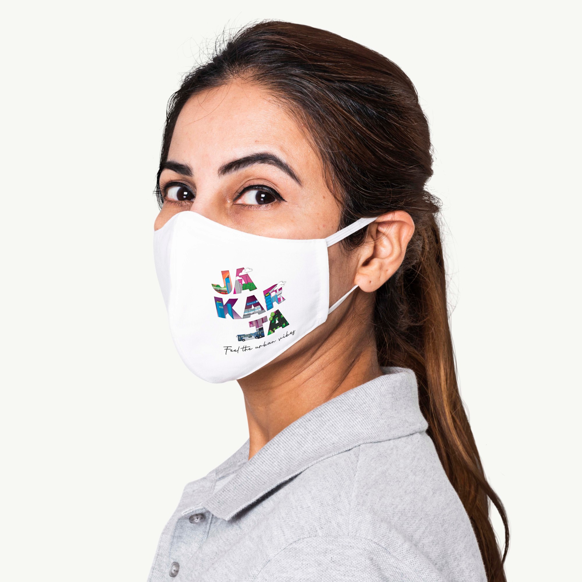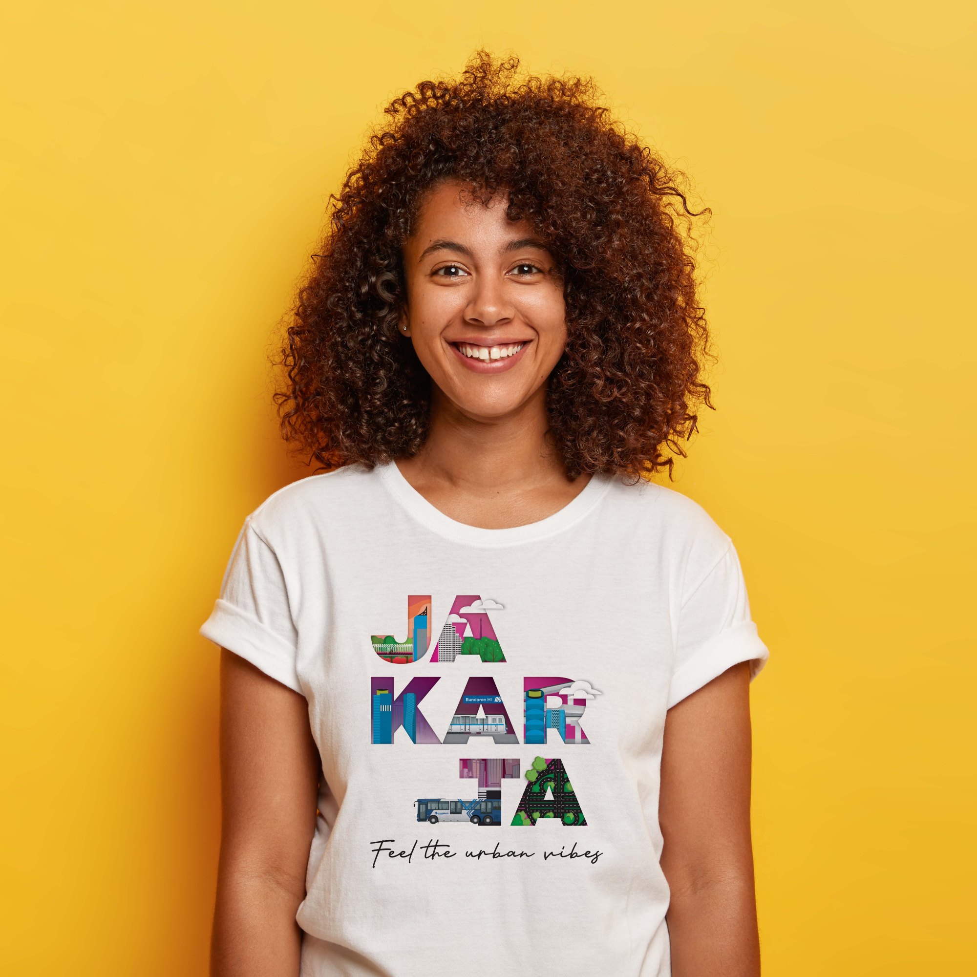Elevating the city through distinct merchandise not only fosters appreciation but also solidifies its brand identity. Utilizing iconic landmarks is a common practice in city branding. For our urban city-themed collection, we’ve crafted a collage featuring prominent elements of Jakarta, including the MRT, Trans Jakarta, Semanggi Interchange, and several iconic skyscrapers.