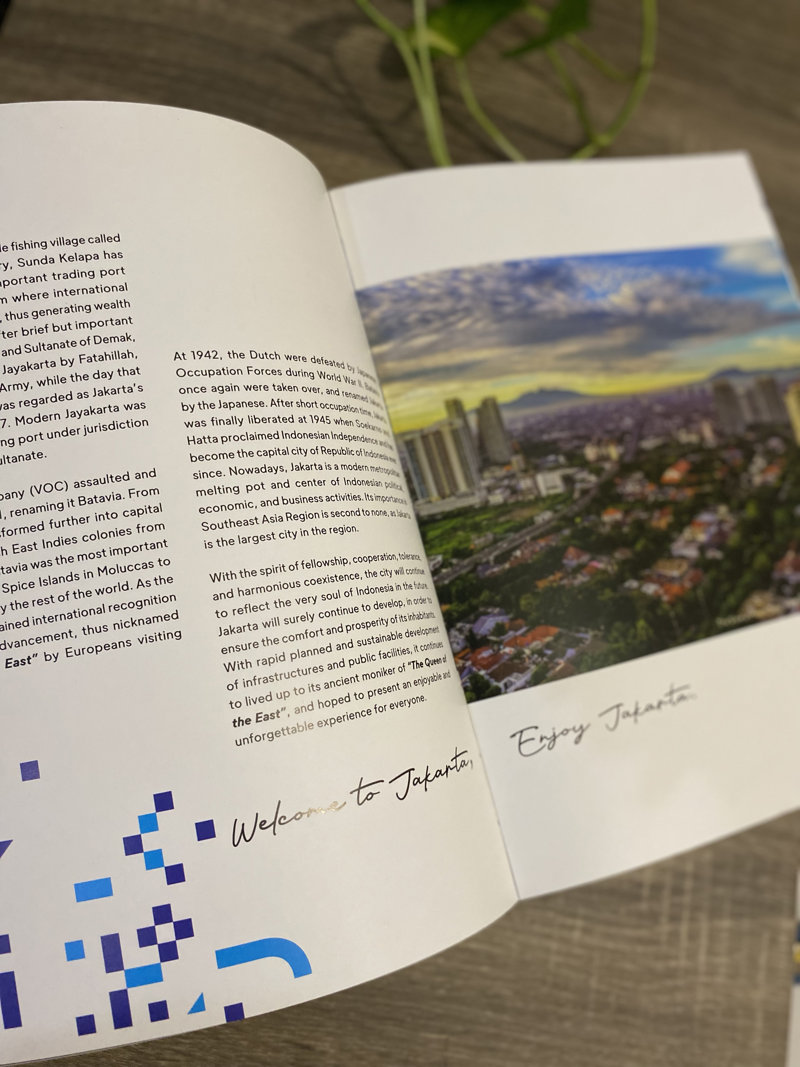 With the theme was urban city, we create a collage of iconic things of Jakarta, like MRT, Selamat Datang Statue, National Monument, Old Batavia and some iconic skyscrapers.