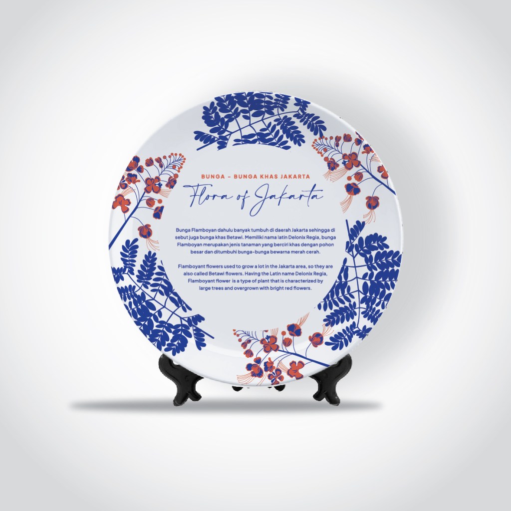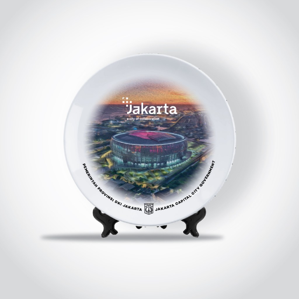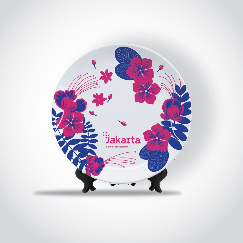Promoting the city with unique merchandise not only giving the sense of appreciation but also branding the city. The illustration on ceramic describes the cultures of Betawi like the traditional clothes of Betawi tribes, one of tanjidor orchestra musician and with the background of The governor palace.